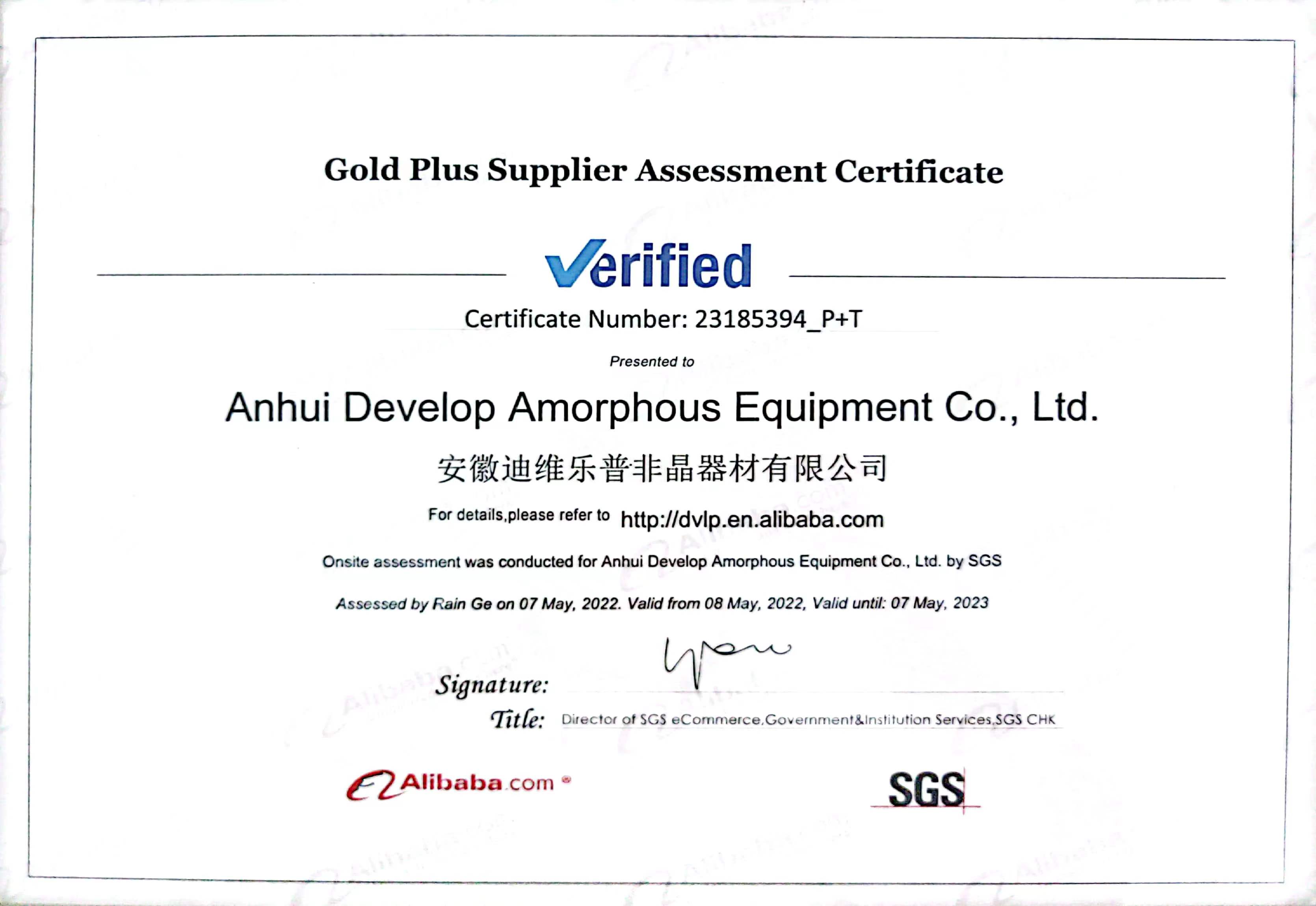 SGS質量體系證書